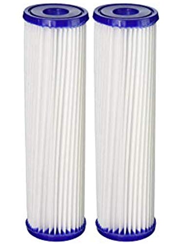 5 Micron 20" Big Blue Pleated Sediment Water Filter Replacement Cartridge | Whole House Sediment Filtration | Compatible with ECP5-BB, AP810-2, HDC3001, CP5-BB, SPC-45-1005, ECP1-20BB, 2-Pack Made of 100% Pure POLYPROPYLENE Microfibers. Whole house sediment filtration. Contains no binders, agents, solvents, antistatic materials or wetting agents. This cartridge is pleated, it provides increased surface area and longer filter life. Pleated cartridge provides depth filtration and remove more contaminants, large and fine particles from a drinking water, such as sand, dirt, silt, and rust particles. COMPATIBLE REPLACEMENT FILTERS Ace Hardware 4021341, American Plumber 155184-51, W5CPHD, Ametek CP5-BB, AquaPure AP810-2, Culligan 155184, CP5-BB, CP5-BBS, CP5-BBSa, ClearChoice 84634, 84646, 84647, Cuno CFS210-2, Dupont HDC3001, Flowmax FM-BB-20-1, FreshWaterSystems PS-45097-05, PS-45200-01, OmniFilter RS15, RS-15, FreshWaterSystems PS-45200-05, Harmsco HB-20-1W, HB-20-5W, WB-HB-20-1W, WB-HB-20-5W, Hydronix SPC-45-1005, SPC-45-2001, SPC-45-2005, Keystone GPC5. COMPATIBLE FILTERS AND HOUSINGS] Liquatec SPF-45-1005, SPF-45-2005, Neo-Pure PS-45097-05, PS-45200-01, PS-45200-05, Pelican PBBB-P20-5, PBB-P20-1, PBB-P20-5, Pentek 255490-43, 255493-43, 255494-43, ECP1-20BB, ECP5-20BB, ECP5-BB, Purwater PC05-BB-S, ShurFlo 15-054-02, Watts FM-BB-20-5, PWPL20BBM5, WPC1FF20, etc. Fits most 20 inch Big Blue Whole House systems. **Please note this is a compatible spare part and the manufacturers' names and part numbers have been used for reference purposes only.