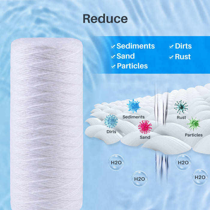Helps protect your new filter system and your home appliances from the damaging effects of sediment (dirt and debris) build up. The sediment in city or well water can clog faucets, damage appliances and even change the taste of your drinking water. The pre-filter system filters out particles as small as 5 microns in size. Lengthens life of filter system and appliances Filters down to 20 times smaller than the diameter of a human hair Each filter is effective for approximately 6-9 months depending on use.